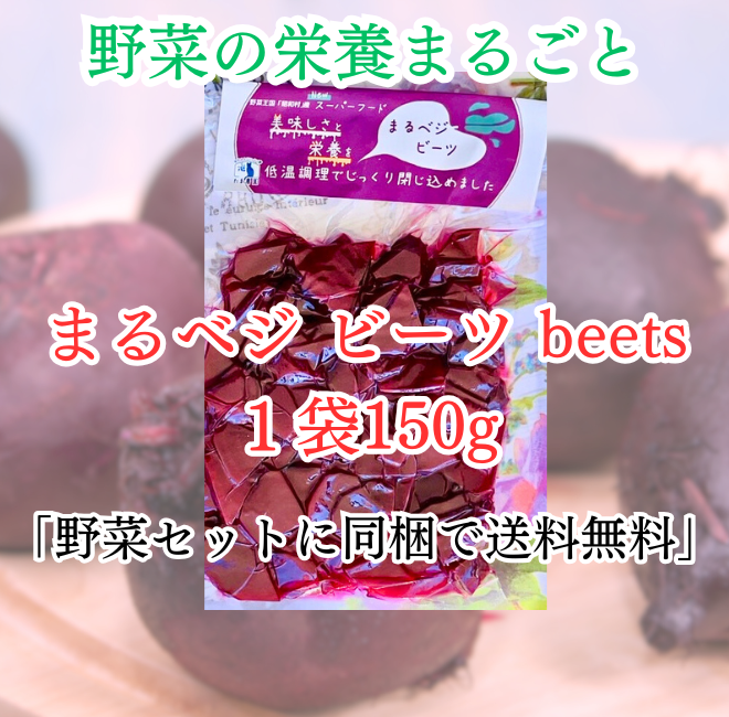 たまさんおすすめ! 150gの使いやすいサイズでお届けします。 お手軽にビーツを取り入れたい方にぴったりの「まるベジビーツ」、クール便でお届けいたします!