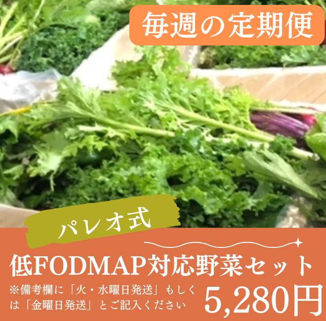 パレオ式!低FODMAP対応野菜セット野菜セット 数量 パレオ式!低FODMAP対応野菜セット個 5,280円お買い物カゴに追加 レビュー レビューを投稿する コメントをキャンセルメールアドレスが公開されることはありません。 全て必須項目です。 評価する 悪い 良くない 平均 良好 最高レビュー内容名前メールアドレス 次回のコメントで使用するためブラウザーに自分の名前、メールアドレス、サイトを保存する。 関連商品 定期便【たま野菜セット SSサイズ】毎週火~水曜日発送【送料無料(クール便)】4,500円 【数量限定】おためし野菜セットSサイズ 【送料込】4,850円 定期便【たま野菜セット Mサイズ】毎週火~水曜日発送【送料無料(クール便)】8,100円 / month / 1ヶ月 定期便【たま野菜セット Sサイズ】毎週火~水曜日発送【送料無料(クール便)】4,780円 / month / 1ヶ月 定期便【たま野菜セット SSサイズ】毎週火~水曜日発送【送料無料(クール便)】4,500円 / month / 1ヶ月